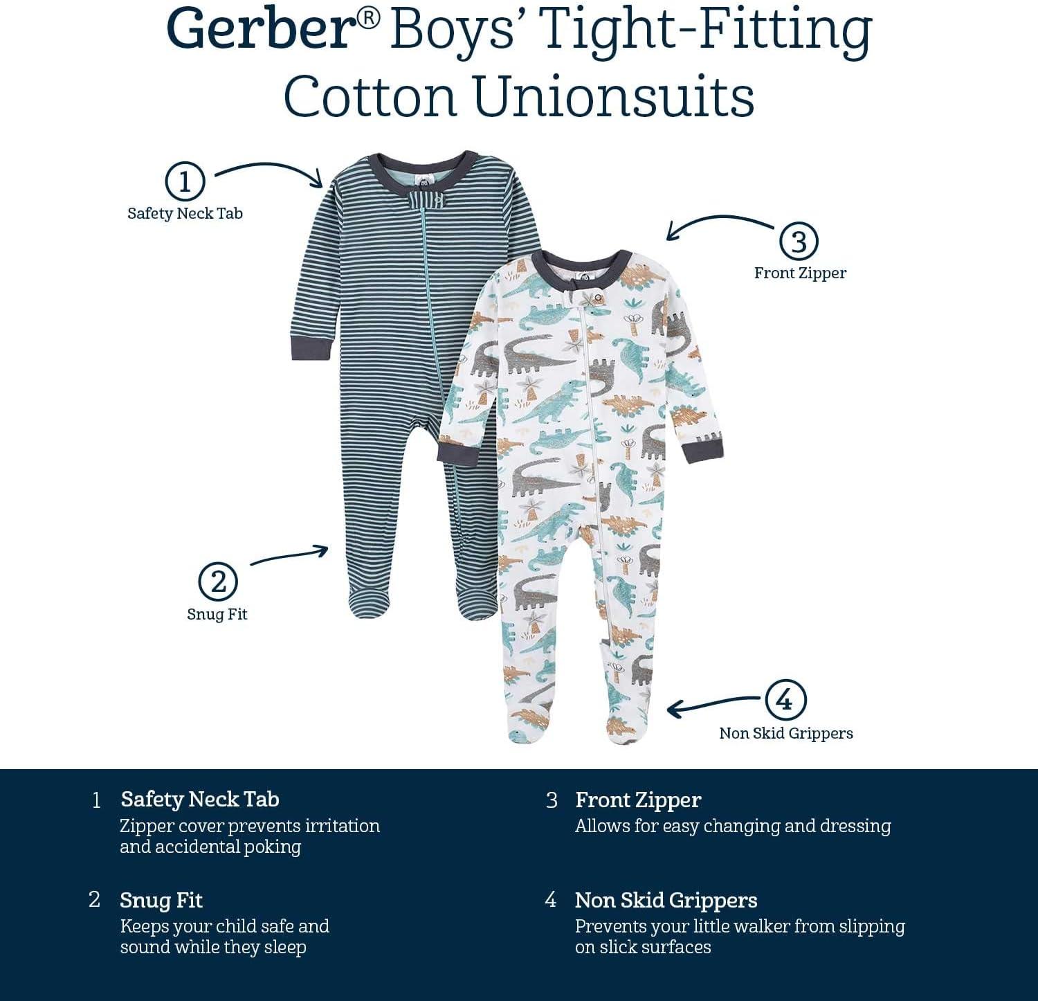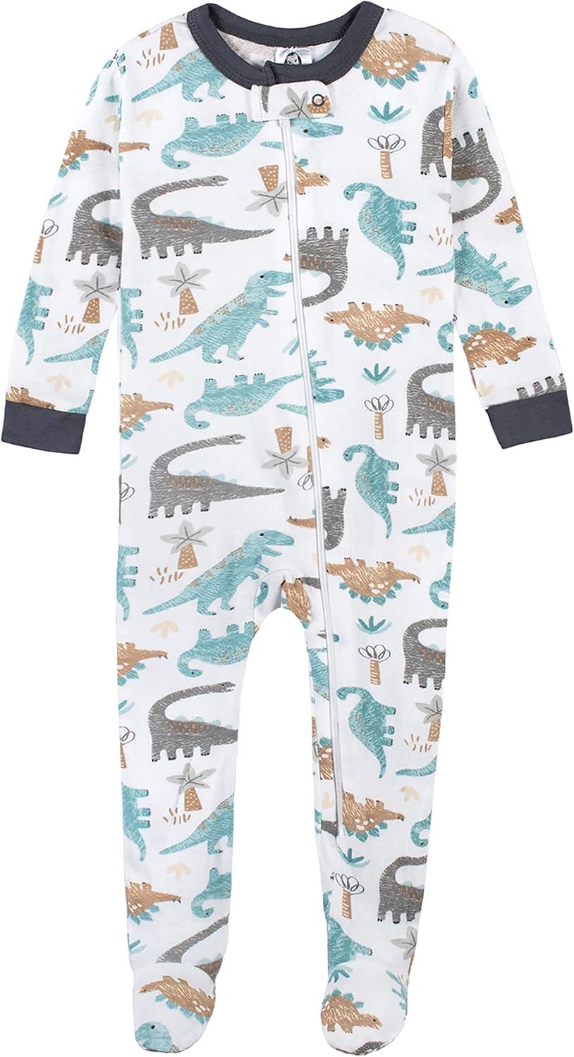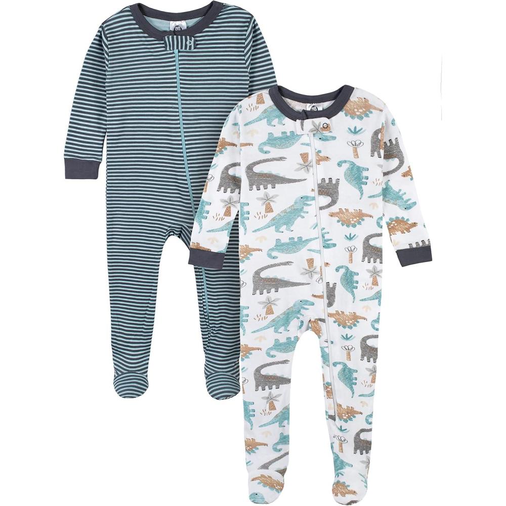Gerber baby-boys 2-pack Snug Fit Footed Cotton Pajamas(Sleepy Blue Dino)