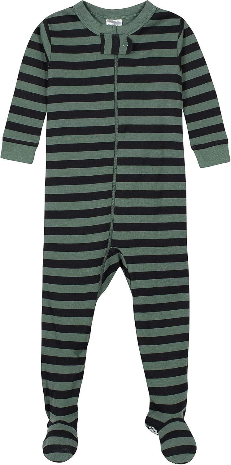 This 4-pack of baby or toddler pajamas is the perfect way to prepare for colder weather, keeping little ones cozy all season long. Crafted primarily from soft cotton, these pajamas offer a breathable and gentle feel against the skin, making them ideal for a comfortable night’s sleep. A two-way zipper with a neckline guard ensures easy dressing and diaper changes, while spandex trim at the neckline and wrists provides a flexible, secure fit. Designed with a tight-fitting style for safe wear, these pajamas also feature non-skid soles to provide extra traction and support for little feet. Whether you’re stocking up for your own child or looking for a thoughtful baby shower gift, this multipack is a cozy, practical choice.