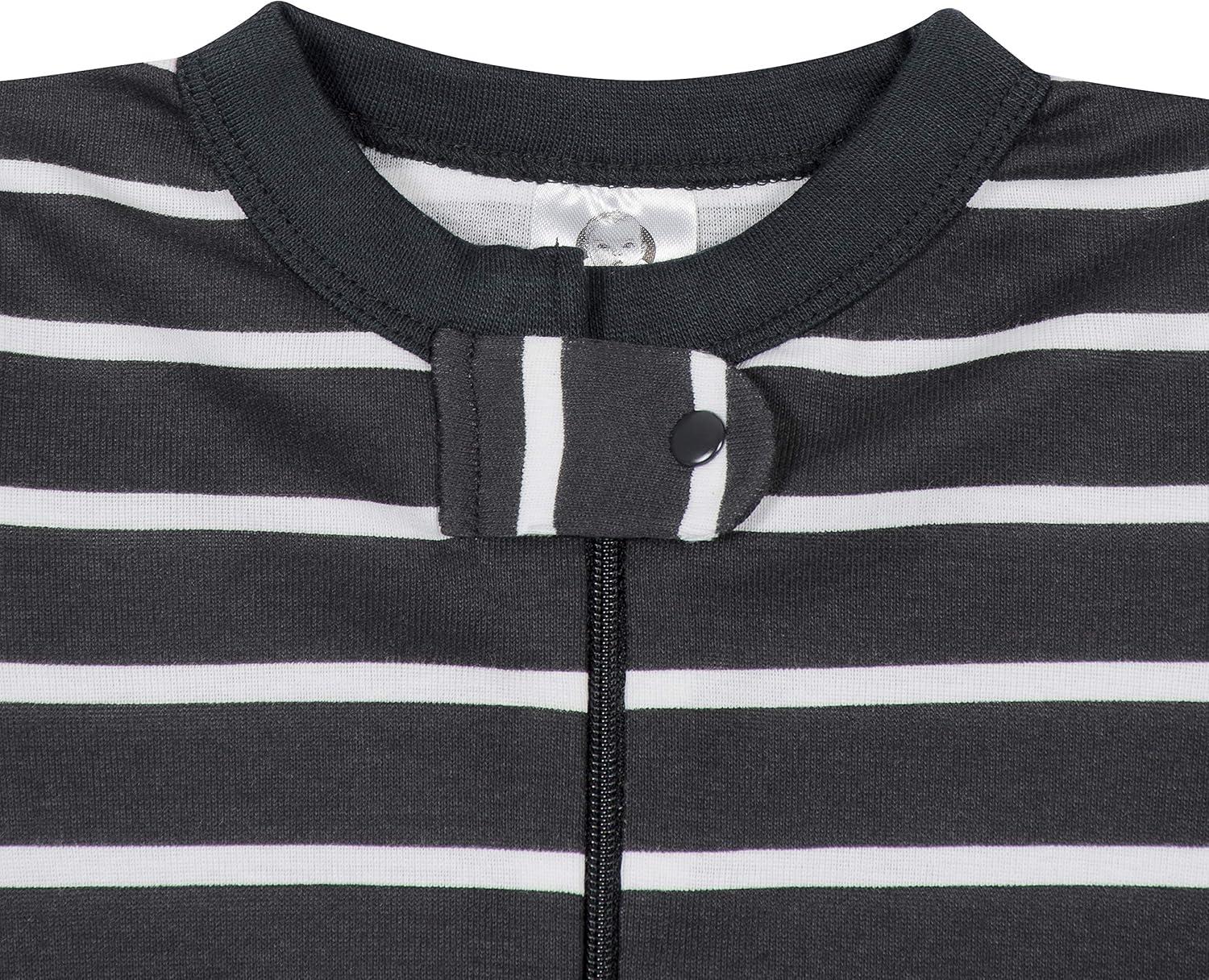 This 4-pack of baby or toddler pajamas is the perfect way to prepare for colder weather, keeping little ones cozy all season long. Crafted primarily from soft cotton, these pajamas offer a breathable and gentle feel against the skin, making them ideal for a comfortable night’s sleep. A two-way zipper with a neckline guard ensures easy dressing and diaper changes, while spandex trim at the neckline and wrists provides a flexible, secure fit. Designed with a tight-fitting style for safe wear, these pajamas also feature non-skid soles to provide extra traction and support for little feet. Whether you’re stocking up for your own child or looking for a thoughtful baby shower gift, this multipack is a cozy, practical choice.