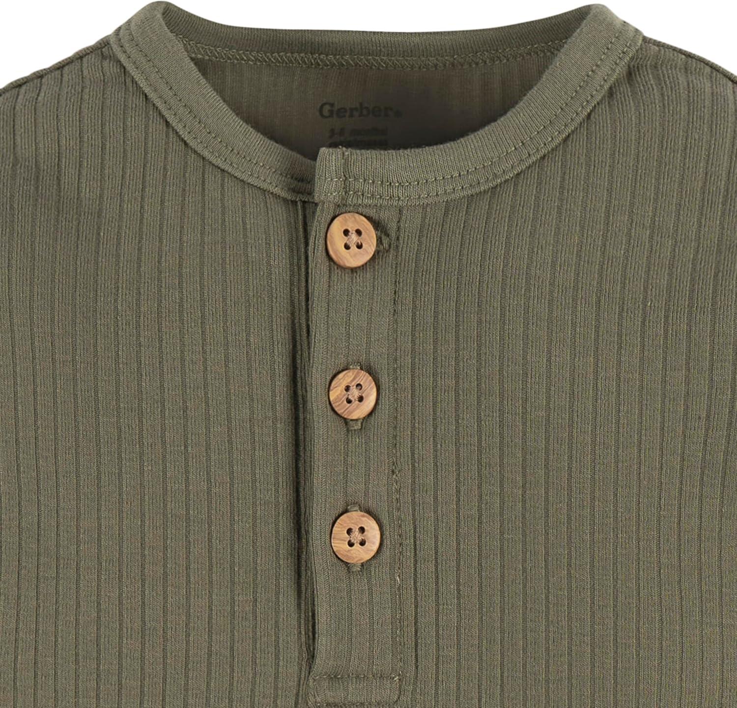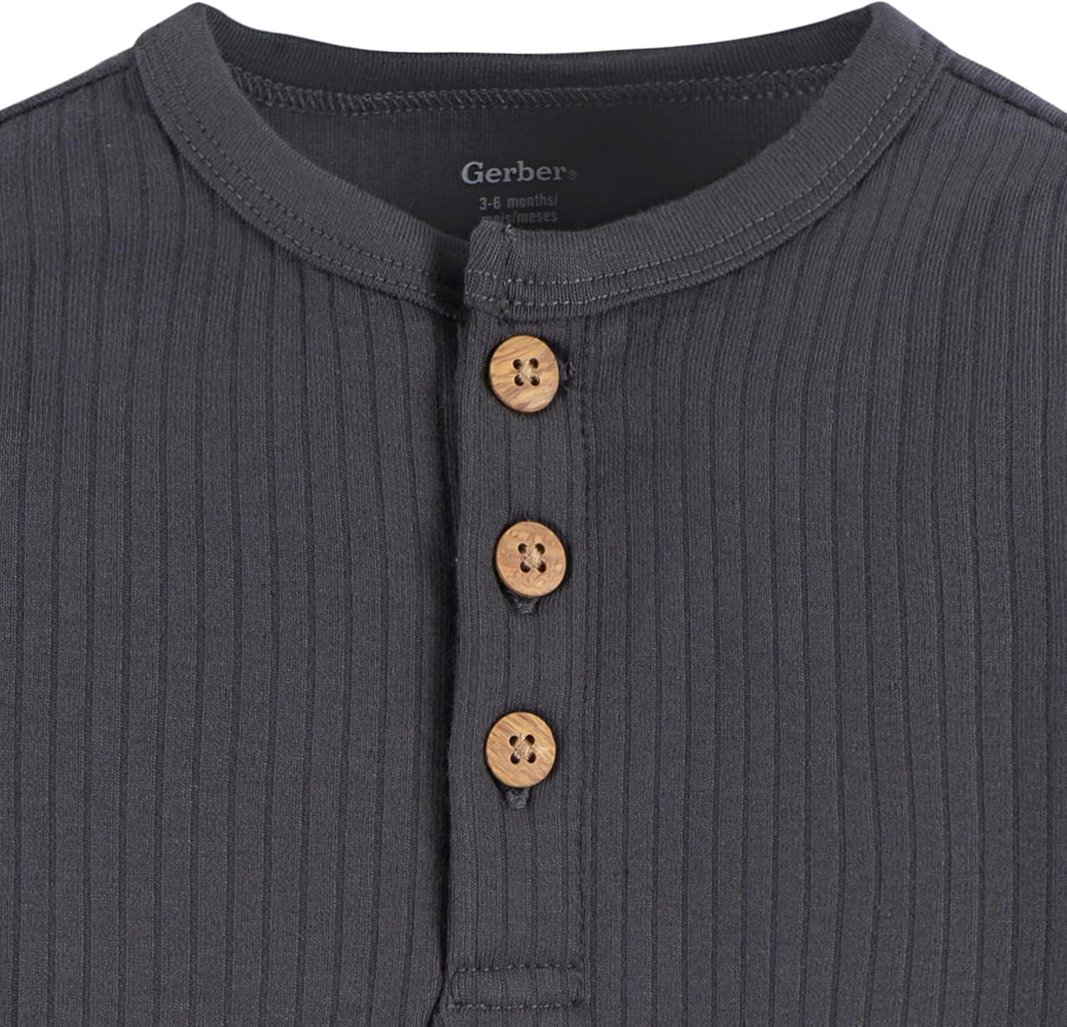 Keep your bundle of joy comfy and stylish with our two-pack of baby bodysuits. Crafted with convenience in mind, these bodysuits feature an easy pull-on design with simple snaps at the legs, making dressing and diaper changes easy. The faux wood Henley-style button-down top adds a classic touch, while comfort ribbing at the neckline and leg openings ensures a comfortable, snug fit for your little one. Perfect for cooler weather, these long-sleeve bodysuits are easy to layer as needed for an extra-cozy feel.