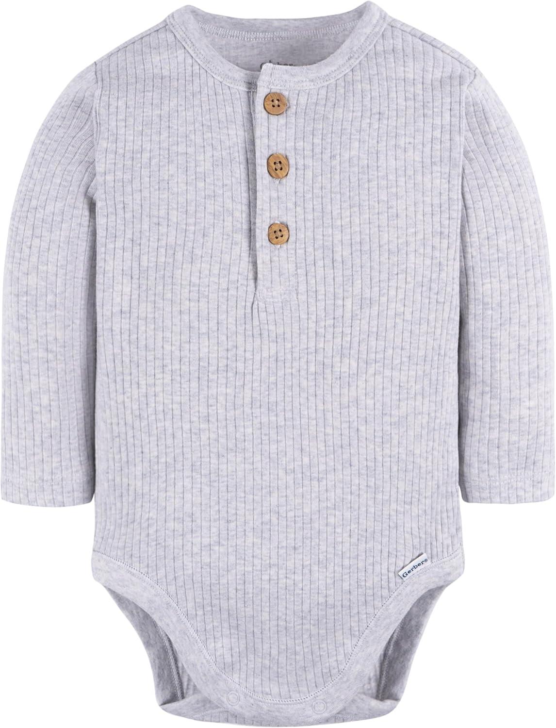 Keep your bundle of joy comfy and stylish with our two-pack of baby bodysuits. Crafted with convenience in mind, these bodysuits feature an easy pull-on design with simple snaps at the legs, making dressing and diaper changes easy. The faux wood Henley-style button-down top adds a classic touch, while comfort ribbing at the neckline and leg openings ensures a comfortable, snug fit for your little one. Perfect for cooler weather, these long-sleeve bodysuits are easy to layer as needed for an extra-cozy feel.