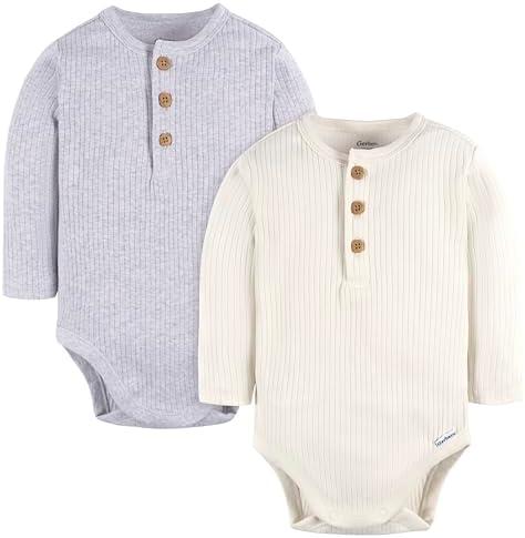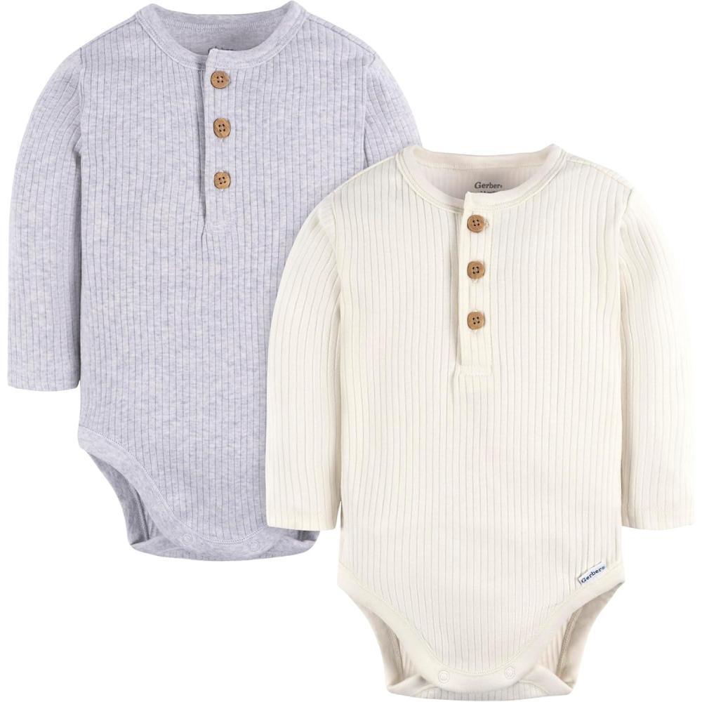 Gerber baby-boys Baby Boys’ and Baby Girls’ 2-pack Bodysuits(Ivory & Grey Heather)