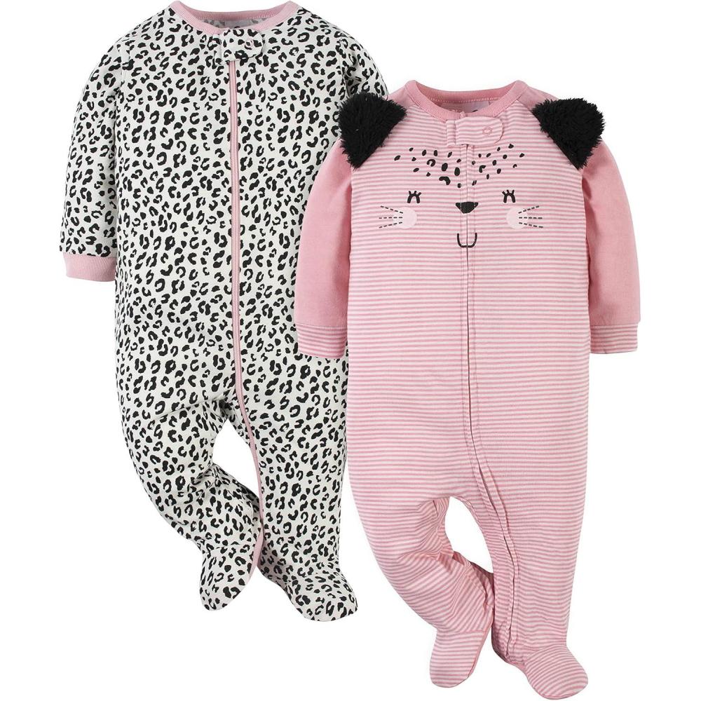 Gerber baby-girls 2-pack Sleep 'N Play(Leopard Pink)