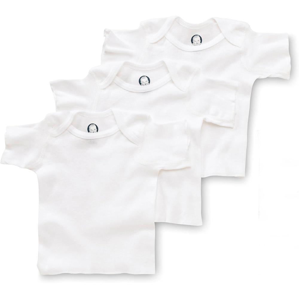 Gerber short sleeve slip-on shirts provide no-fuss dressing over the head, made of 100 percent cotton for softness, lap shoulder neckline and finished sleeves, 3 pack white assortment, machine wash and dry, great item for gift giving