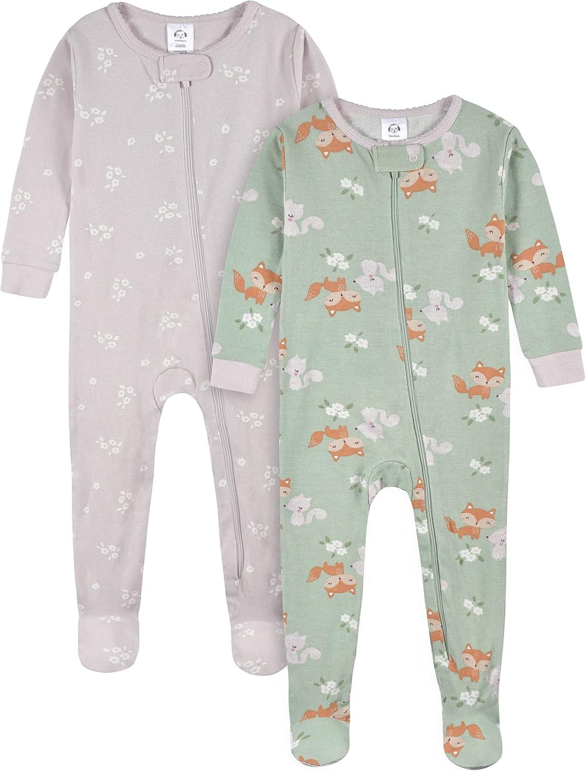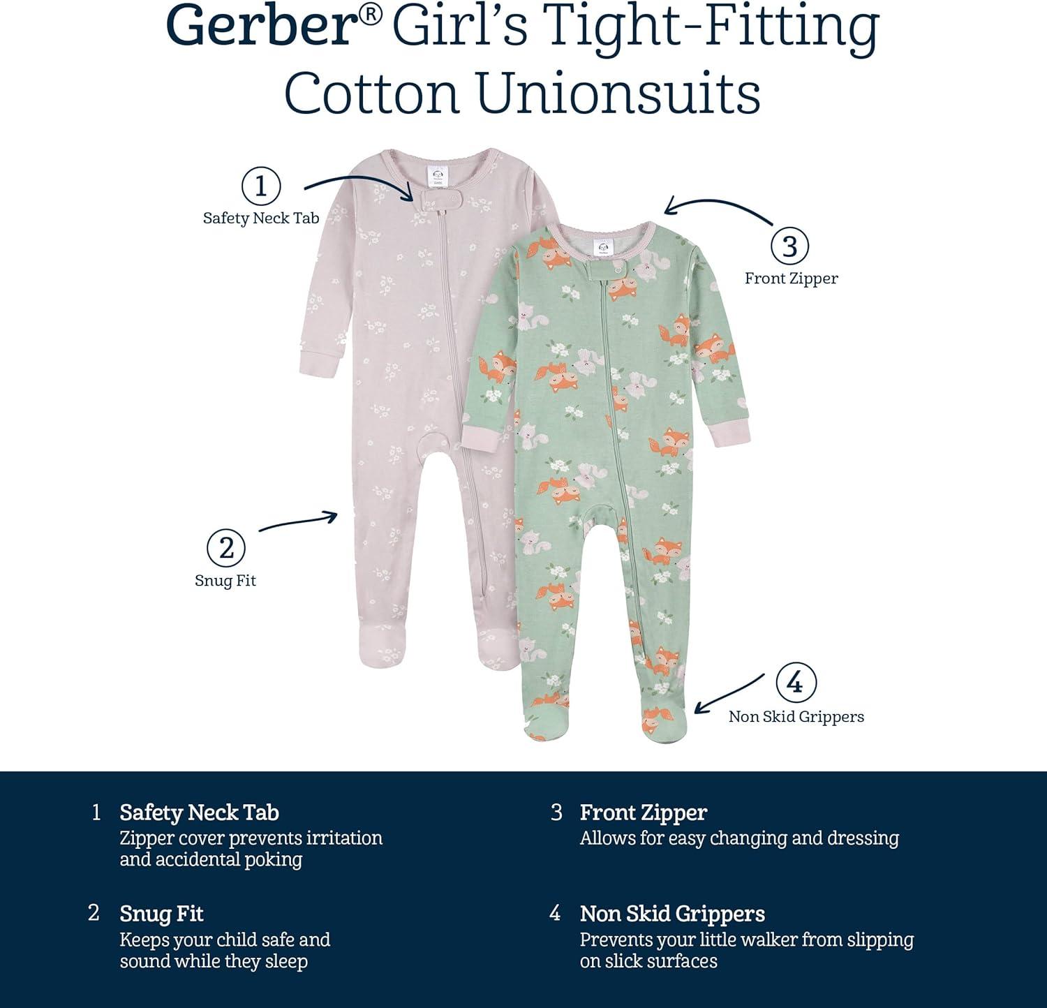 Gerber Baby Girls Baby-girls 4-pack Footed Pajamas(Roses and Fox)