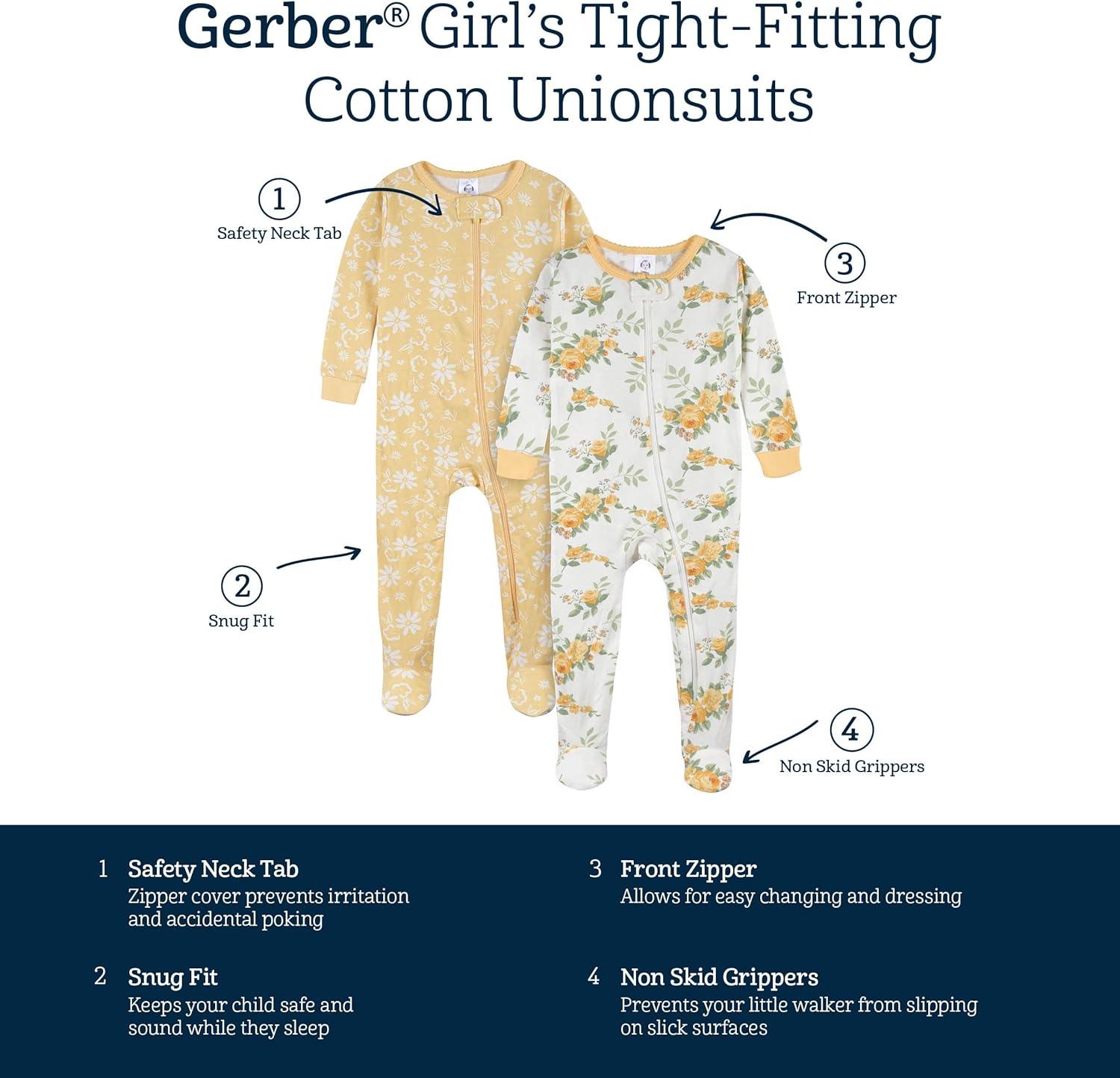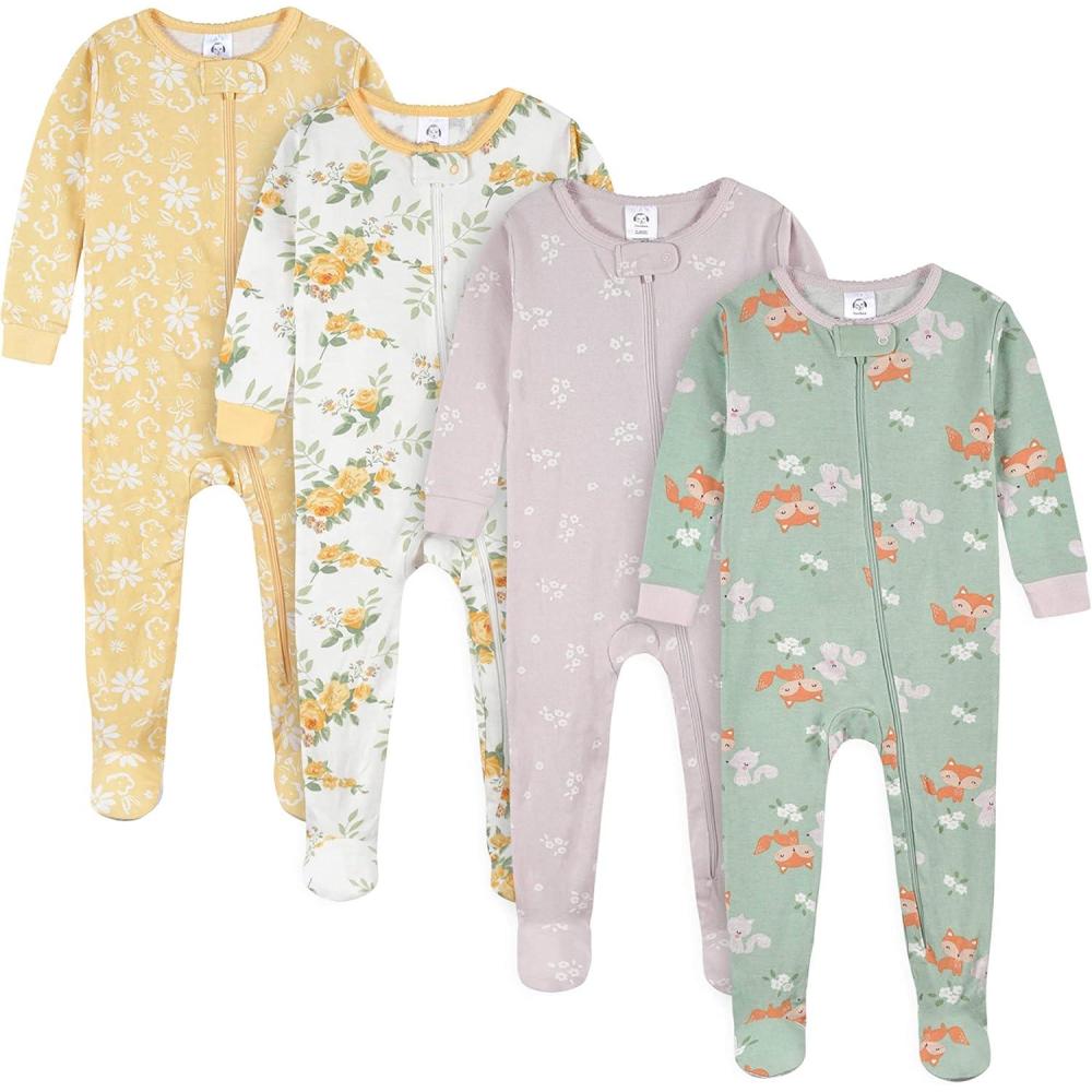Gerber Baby Girls Baby-girls 4-pack Footed Pajamas(Pink Leaves & Flower Toss)