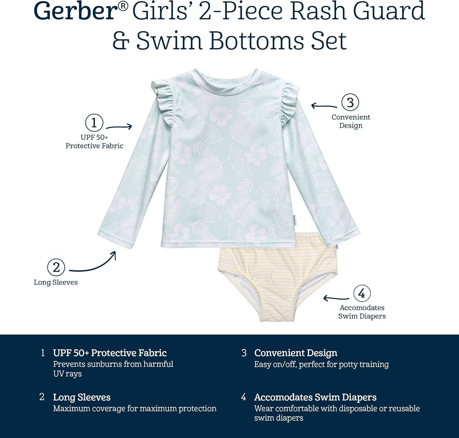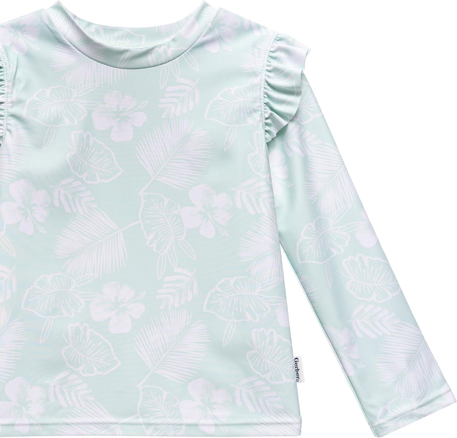 Gerber Baby-Girls Baby Toddler Long Sleeved Rashguard Swim Bathing Suit SetRash Guard Set(Tropical)