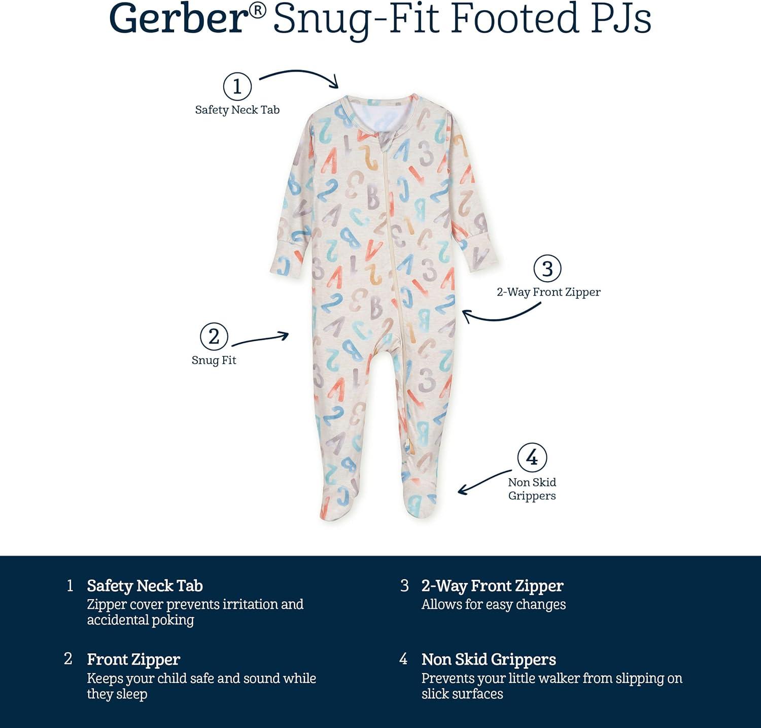 Gerber baby-girls Toddler Buttery-soft Snug Fit Footed Pajamas With Viscose Made With Eucalyptus(Alphabet Soup)