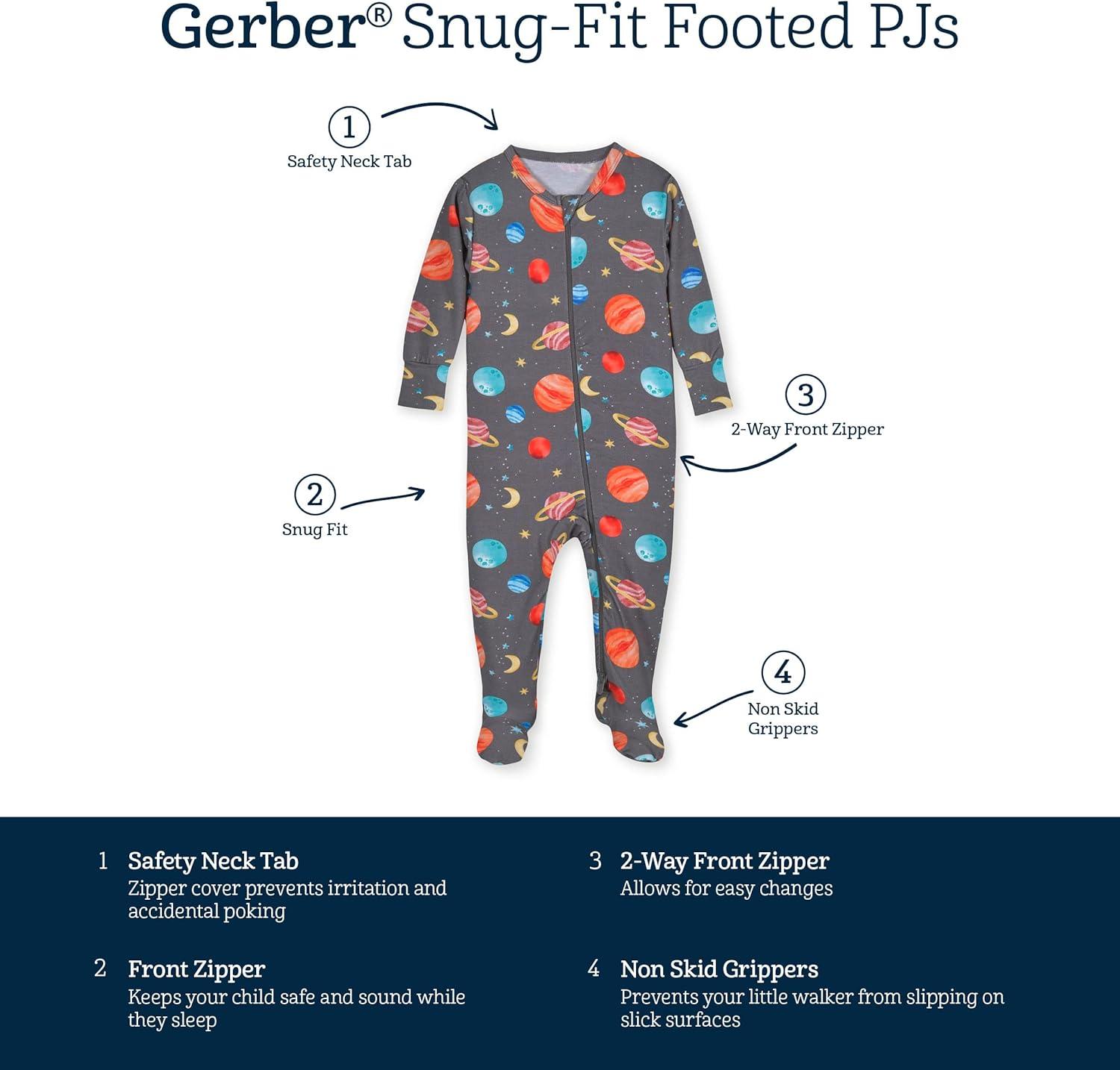 Gerber baby-girls Toddler Buttery-soft Snug Fit Footed Pajamas With Viscose Made With Eucalyptus(Outer Space)