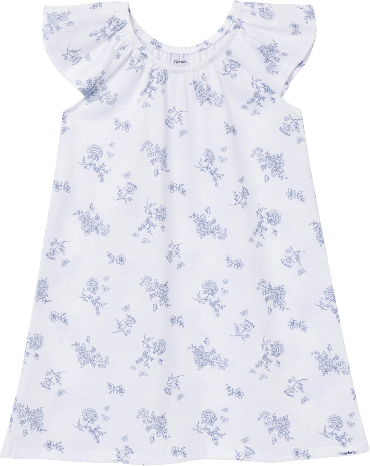 Gerber Baby Girls Toddler Girls’ 2-pack Fleece Nightgowns(Blue Floral)