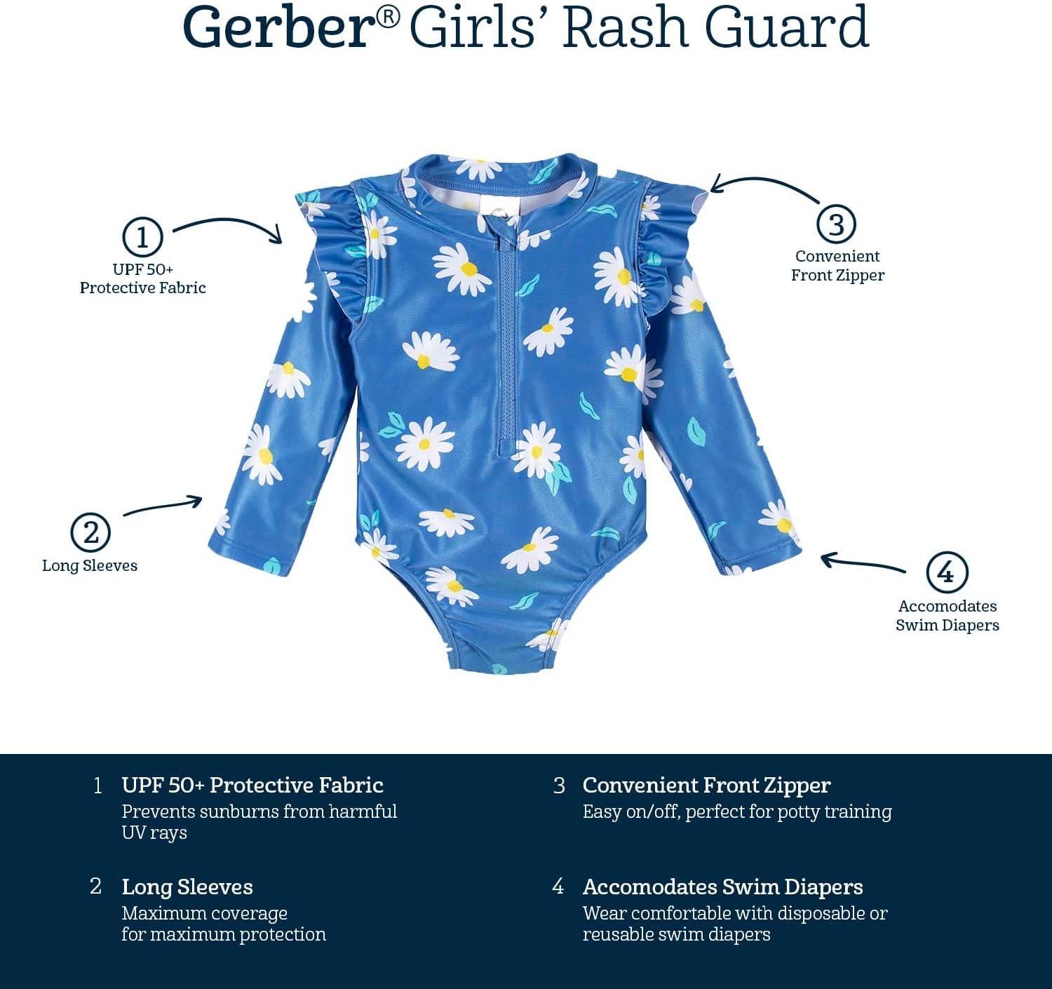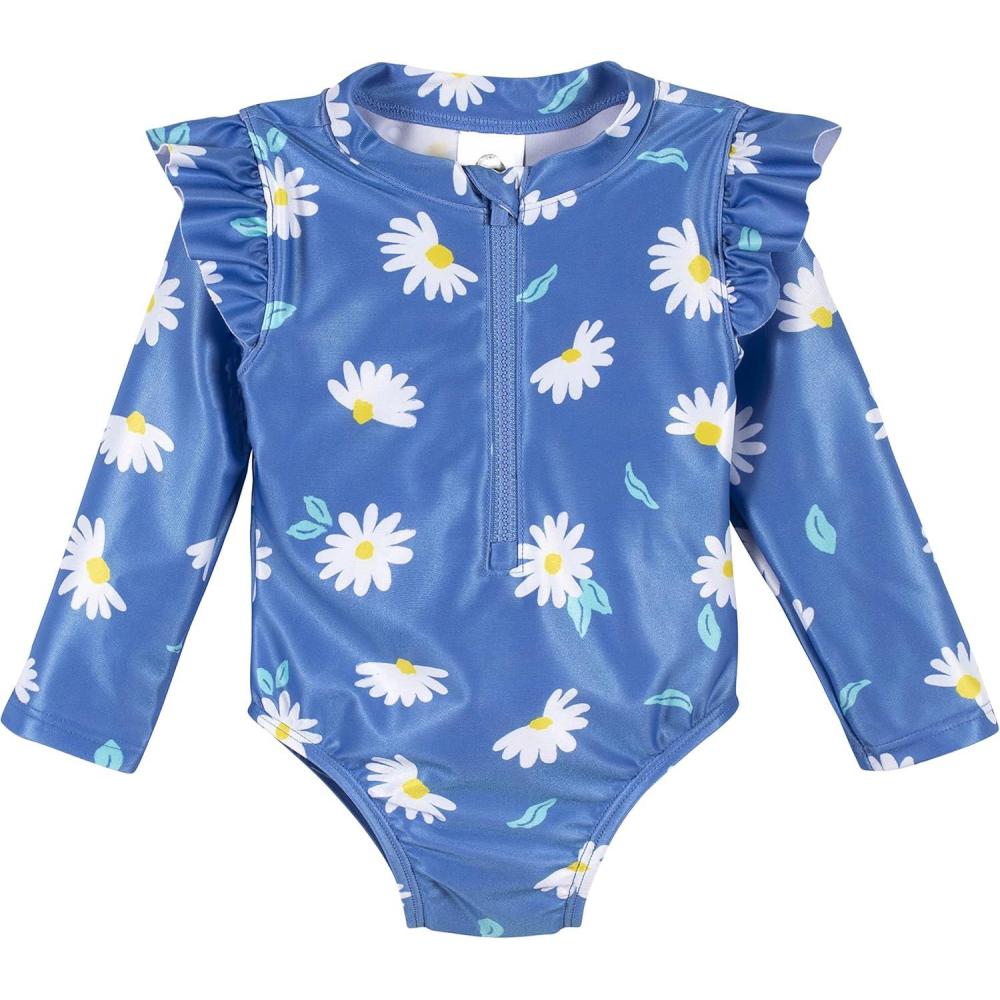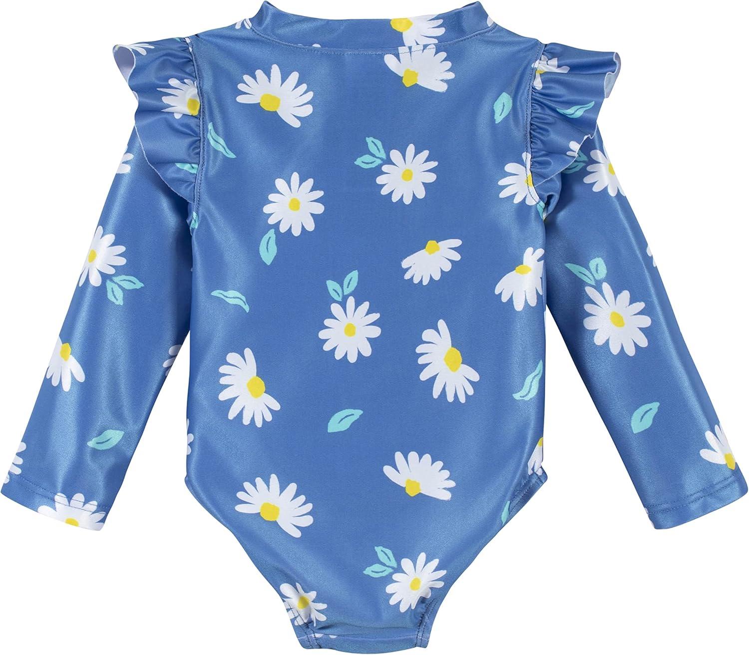 Gerber Baby-Girls Toddler Long Sleeve One Piece Rashguard Swimsuit(Blue Daisies)
