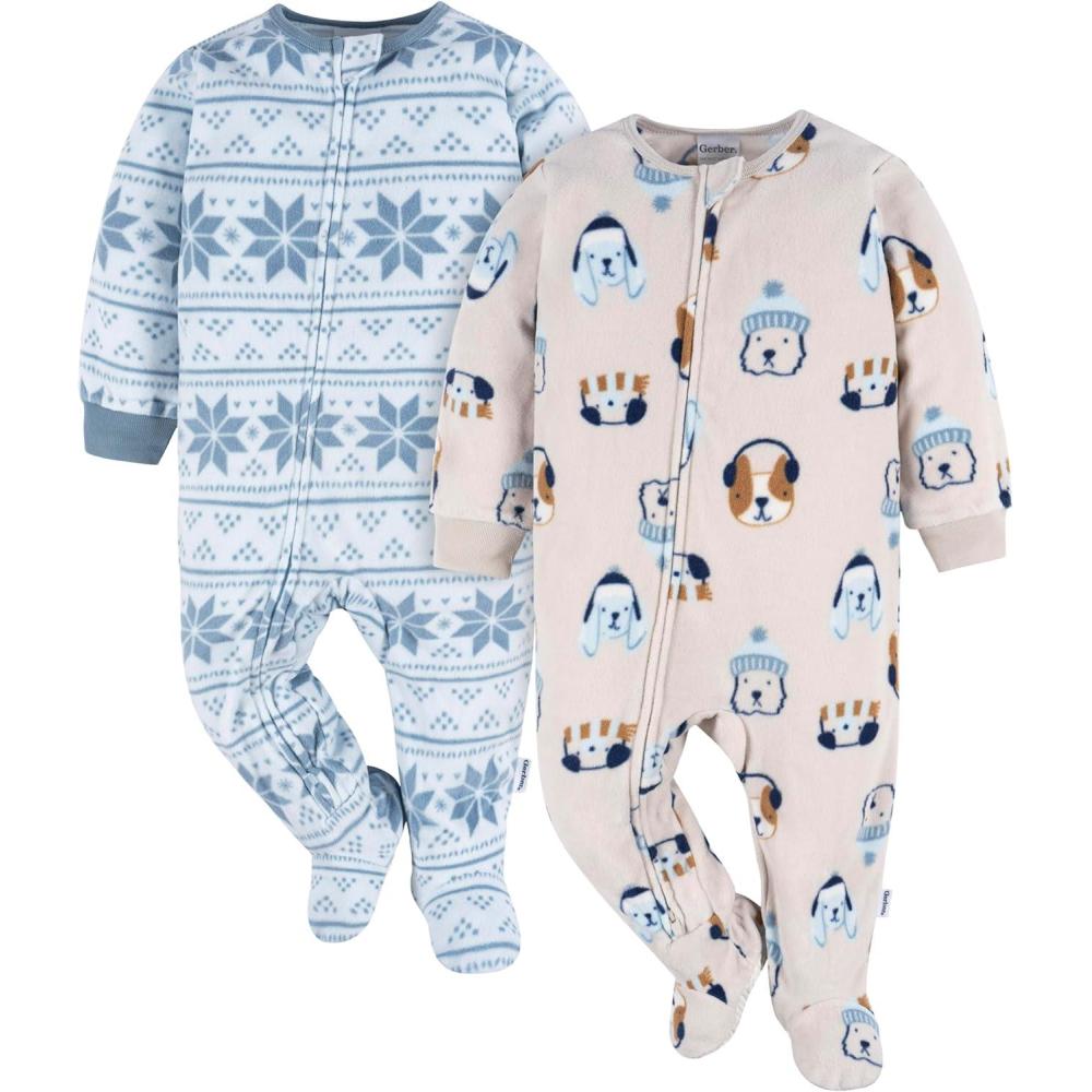 Gerber 2-pack blanket sleepers are made of a super soft microfleece fabric and comfy for wearing anytime of time. The zipper-front opening down leg makes changing so easy along with many more features you'll love. Note: for child's safety, garment should be flame resistant or snug-fitting. These garments are flame resistant