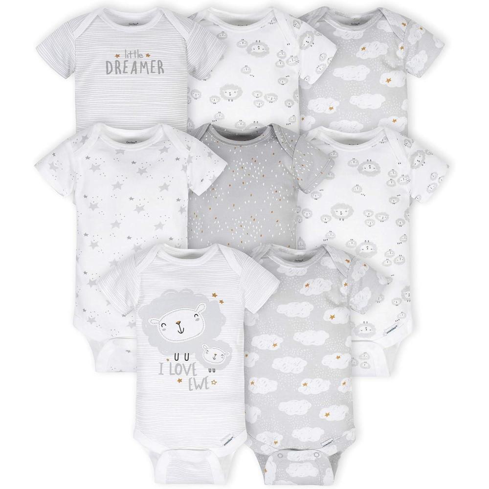 Gerber unisex-baby 8-pack Short Sleeve Onesies Bodysuits(Sheep Grey)