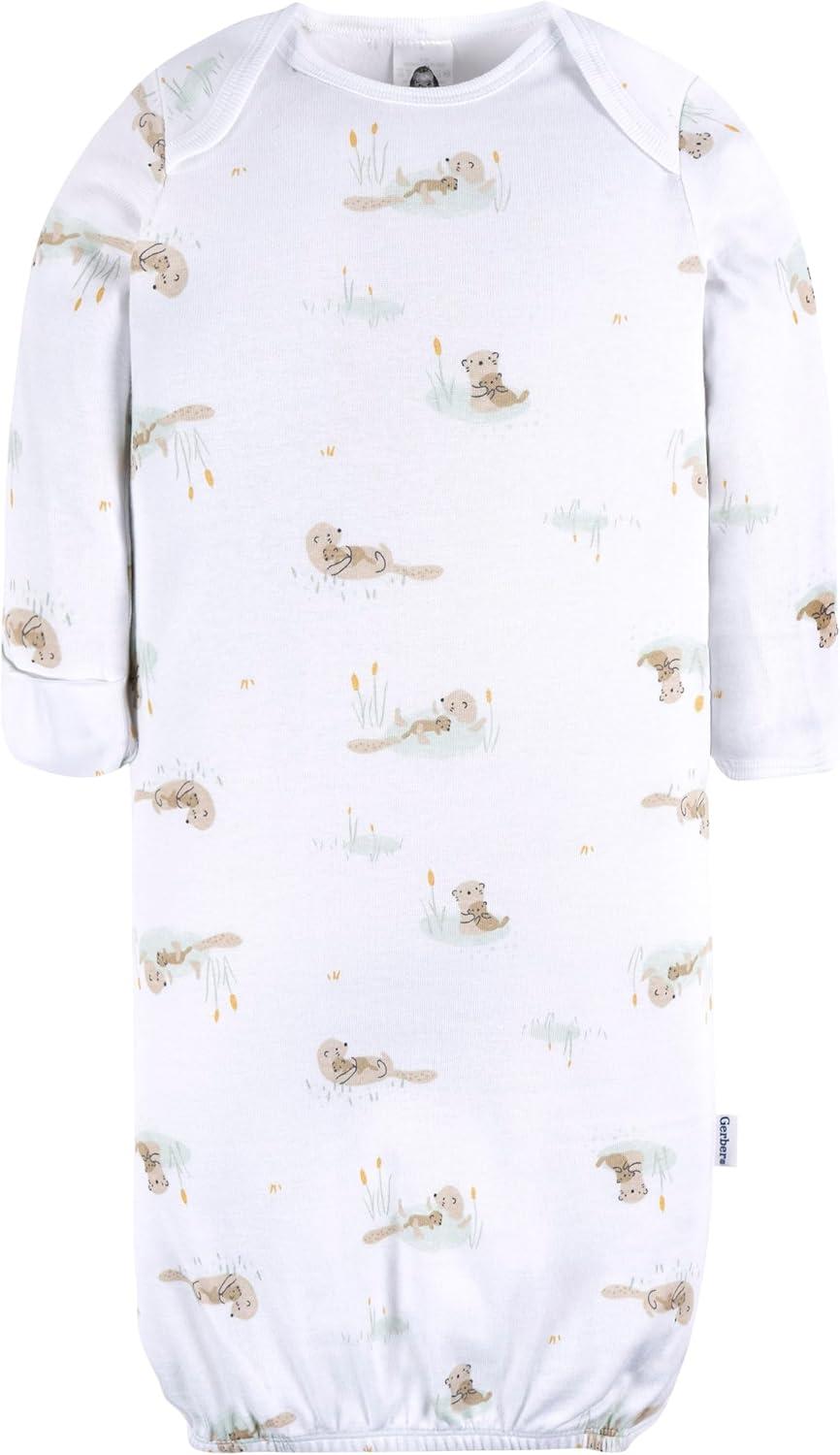 Gerber unisex-baby Baby Boy and Girls 4-pack Sleeper Gown(Eucalyptus Otters)